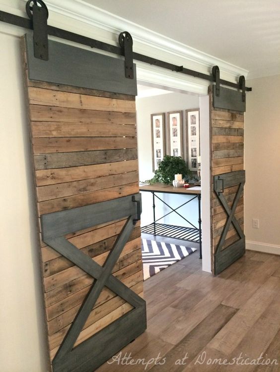 porta scorrevole con materiali da costruzione recuperati