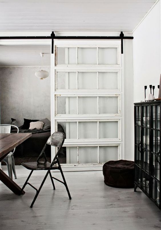 Salva spazio interno con una porta scorrevole con materiali da recupero e pannelli di bolla di vetro .