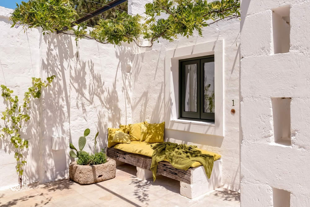 Una masseria di bianco calce, recuperata da mani sapienti e illuminate e condotta da una proprietà di grande tradizione.